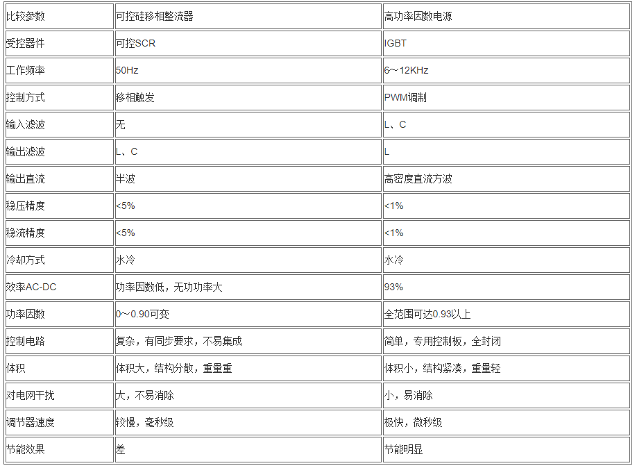 ? ? ? ?①整流柜采用PWM開關電源提高設備功率因數,直流側采用平波電抗作為濾波器以滿足逆變器(電流型逆變器)的工作要求,以達到降低設備輸出電壓脈動,提高紋波系數指標的目的。? ? ? ? ? ? ? ? ? ? ? ? ? ? ? ? ? ? ? ? ? ? ? ? ? ? ? ? ? ? ? ? ? ? ? ? ??